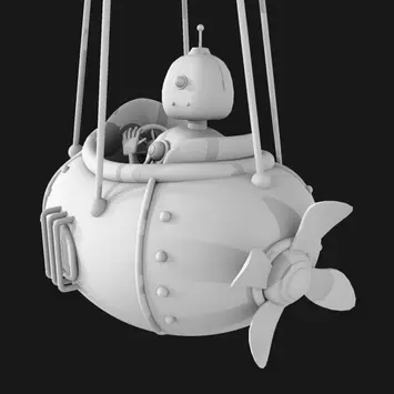 Mobile robot that combines elements of a balloon, a spaceship, and a submarine,